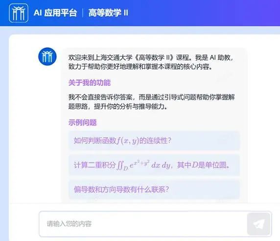 据悉,本地化部署的DeepSeek已为上海交通大学AI应用平台提供新一代大模型底座,成为高等数学、概率统计、线性代数、数学分析、抽象代数、信号与系统等课程的数学深度推理AI学习工具,不仅回答准确率高,还可给出解题思路指导和引导式问题,锻炼分析和推导能力,更多学科课程的AI教学应用将得到升级。