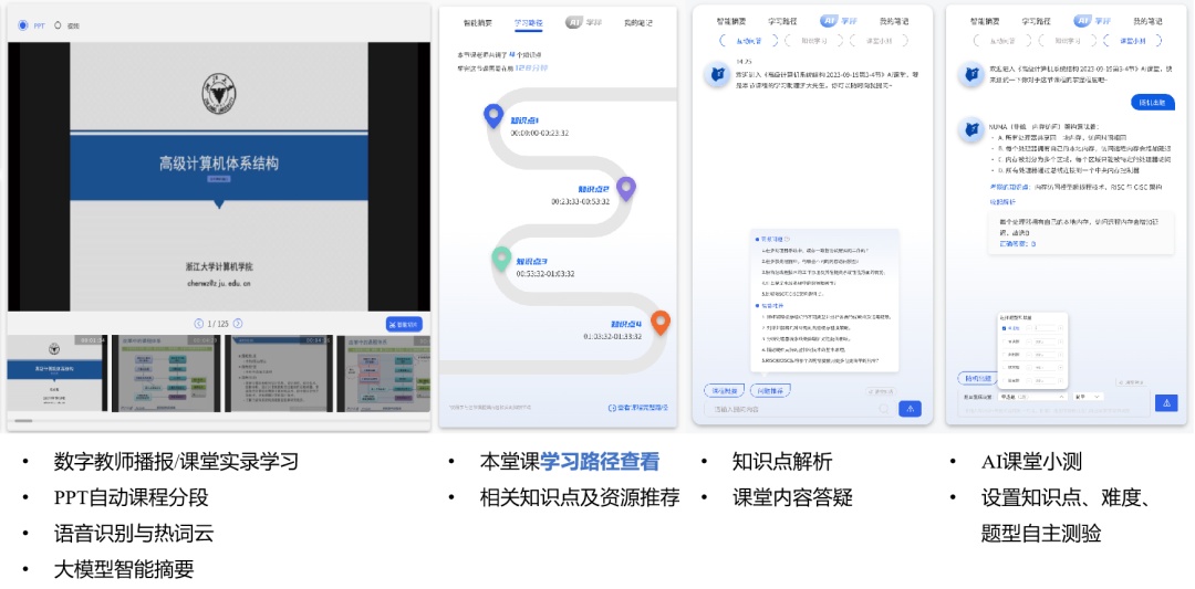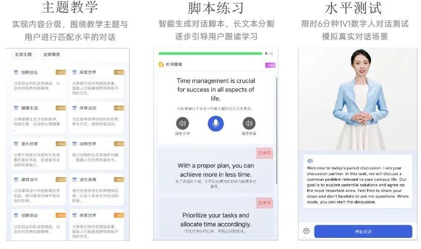 智云课堂: 生成个性化学习路径,实时生成课堂讨论与随堂测验。 学在浙大: AI智慧学伴,随时为学生指点迷津。 ETalk口语平台: 基于DeepSeek动态适配学生水平,主题对话、脚本练习等功能,与学生一对一练习外语。