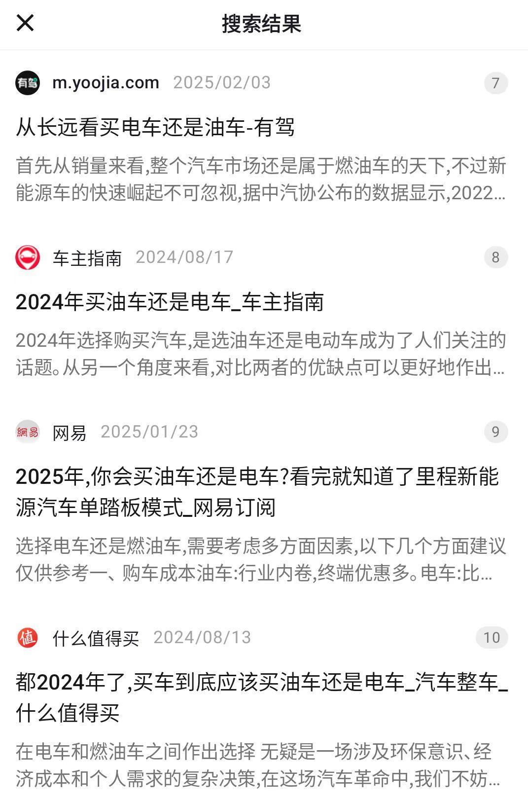 从社交平台上看,不少消费者提出“15万级家用新能源购车建议”“买油车还是电车”等个性化选车需求,DeepSeek都从使用成本、续航能力、使用场景、技术发展等各方面给出了分析。