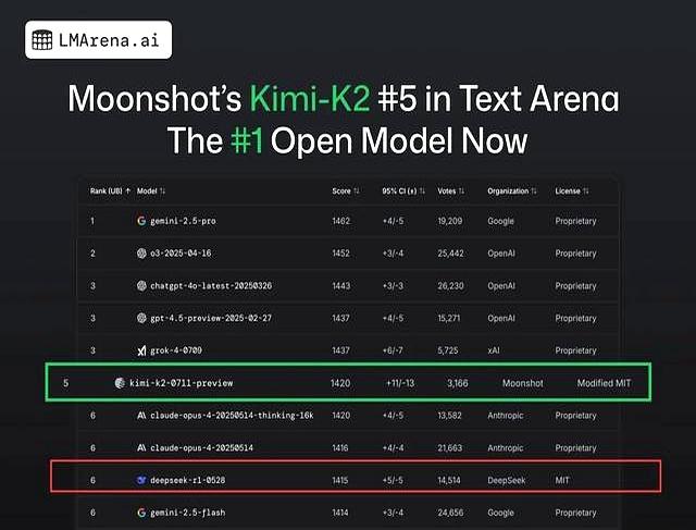 开源和闭源的差距正在变小。以前总觉得开源模型是低配版,现在Kimi直接杀到总榜第五,跟Grok 4就差临门一脚。艾伦研究所的专家预测,明年可能会有开源模型冲进前三。